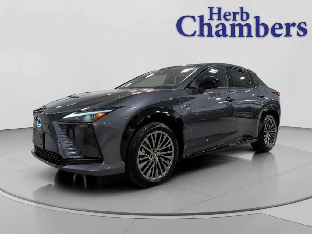 Navigation, All Wheel Drive, Power Liftgate, Heated Driver Seat, Heated Rear Seat, Cooled Driver Seat, Back-Up Camera, Premium Sound System, Satellite Radio, iPod/MP3 Input, Onboard Communications System, Dual Moonroof, Aluminum Wheels, Keyless Start, Dual Zone A/C. Rear Spoiler, MP3 Player, Privacy Glass, Keyless Entry, Remote Trunk Release. Lexus RZ 450e Luxury with Cloudburst Gray exterior and ACCENT BLUE(BLUE CARBON) interior features a Electric Motor. 5-Day 100% Money Back Guarantee / 30-Day 1,500 Mile Vehicle Exchange and, A complete Vehicle Portfolio & CarFax. Visit www.herbchamberssmartpricing.com for complete details. Only a Herb Chambers SMART Pricing Pre-Owned vehicle receives a Multi-Point Inspection